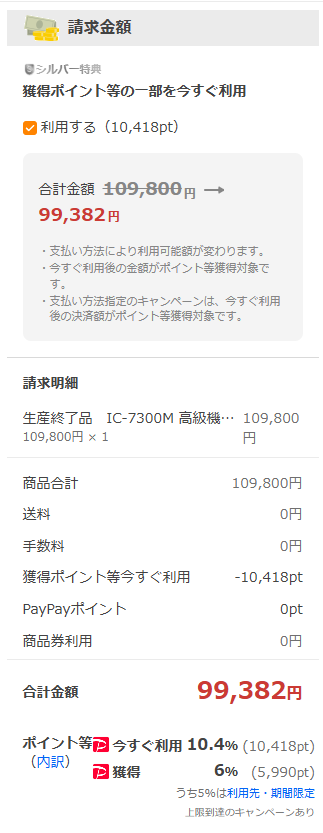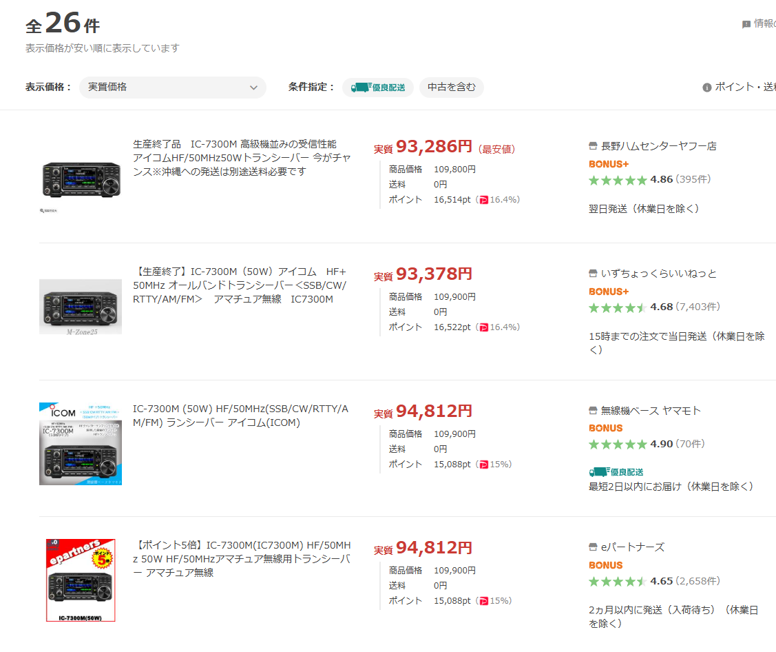 【定点観測】IC-7300M、本日のお値段(93,392円)