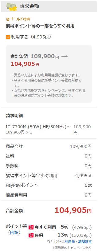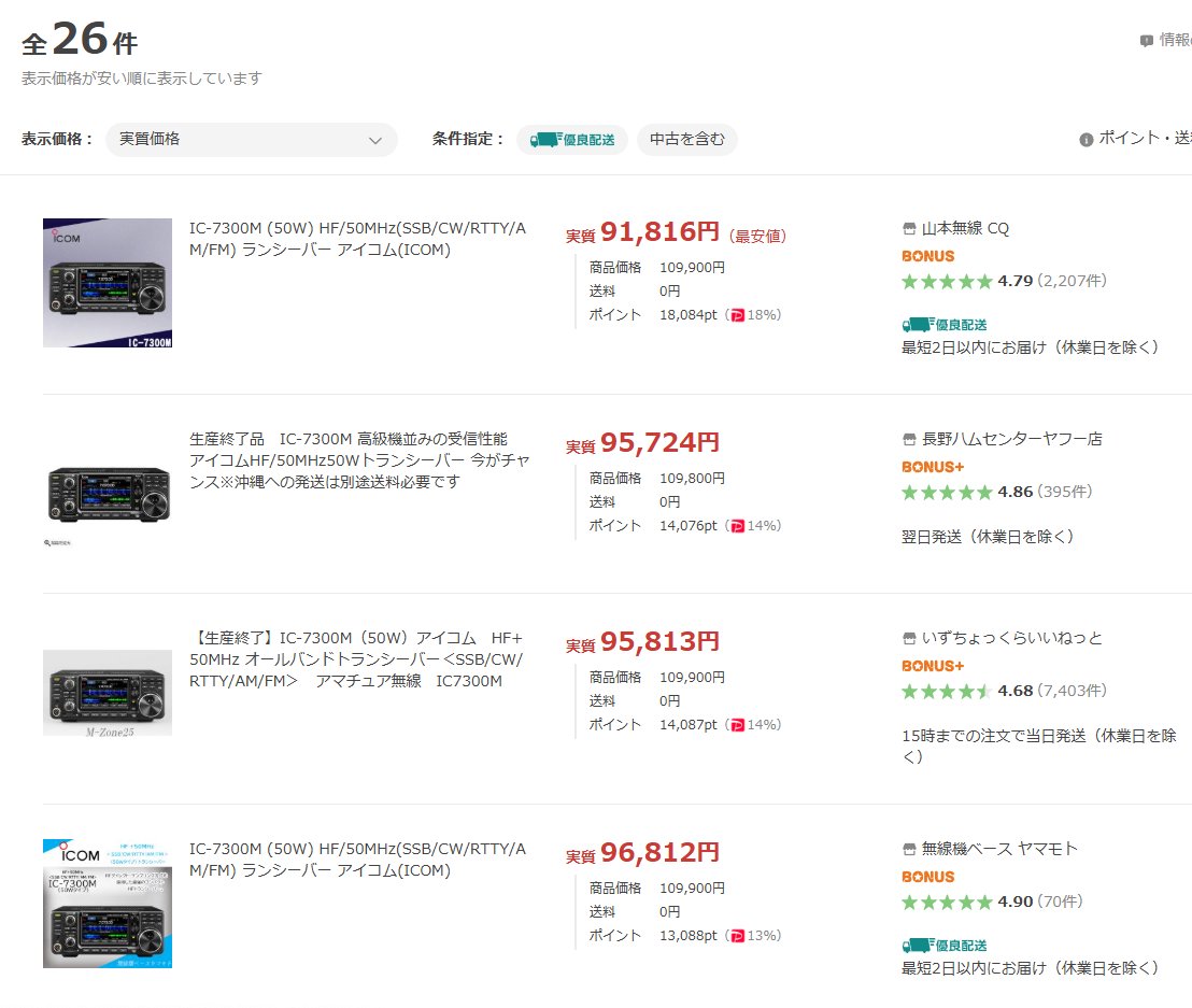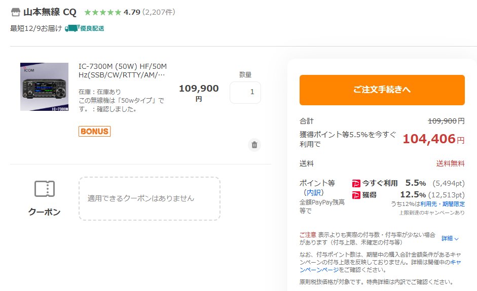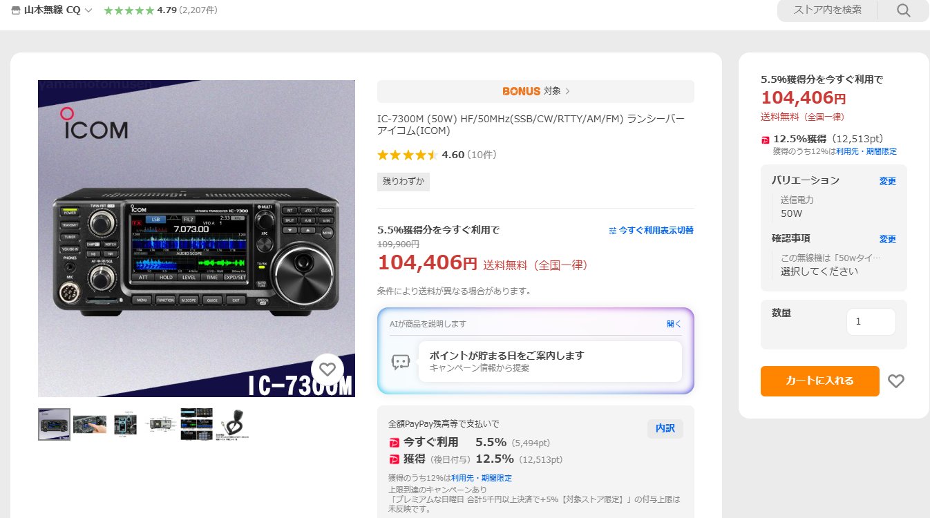 「山本無線CQ」のIC-7300Mの販売ページのリンクはこちら。