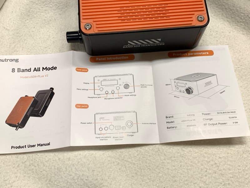 マニュアルはこれだけ。裏は同じ内容(と思われる)中国語版。使い方の説明はなし。まぁ、uSDXは情報がたくさんあるので、探せば簡単に見つかる