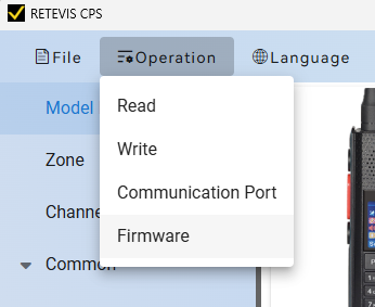 「Operation」タブの「Firmware」を選択する。