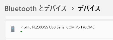 「Prolific PL2303GS USB Serial」として認識される。なお、これは専用ケーブル。RT3Sのものとはプラグは同じだけれど、中身が違う。間違えてつなぐと使えない(やってみた)。