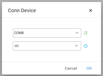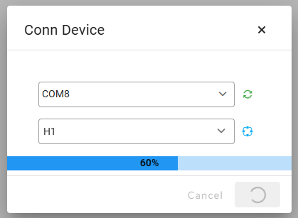 「Conn Device」でH1と接続。先程認識されたCOMポート番号を指定する。