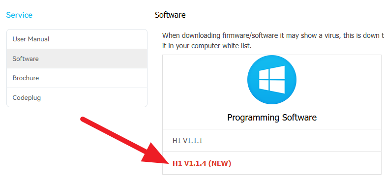 ここの「H1 — プログラミングソフト」のリンクをクリックするとダウンロードページが開く。