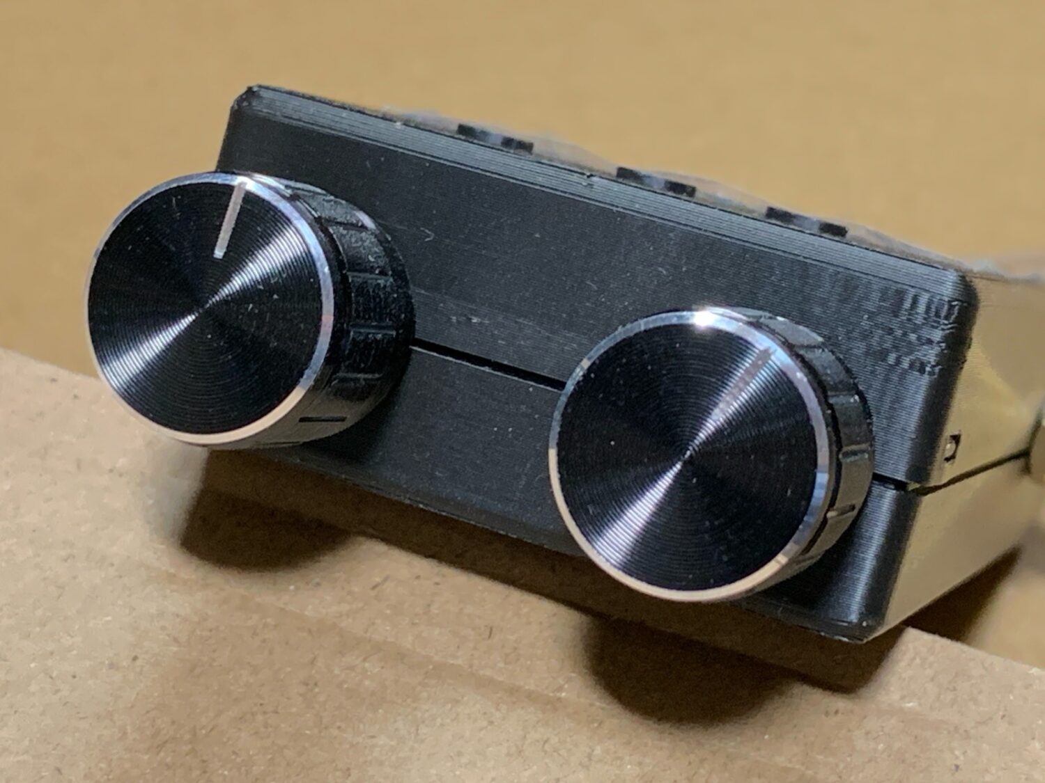 思ったよりも小さい。ATS-miniと比べると横幅がほぼ同じ(ツマミを除く)、縦方向が1.5倍くらい、厚みはちょっと厚い(ATS-miniの方がケースは少し薄いけど、ツマミが出っ張っている)。