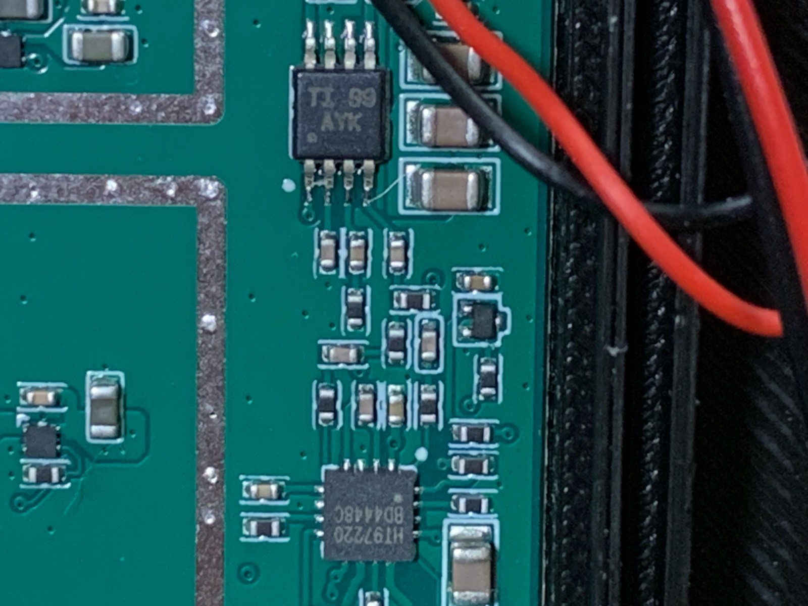 「TI 99 AYK」の刻印のチップは何だろ?場所からしてスピーカアンプだと思うが具体的な品名はわからない。