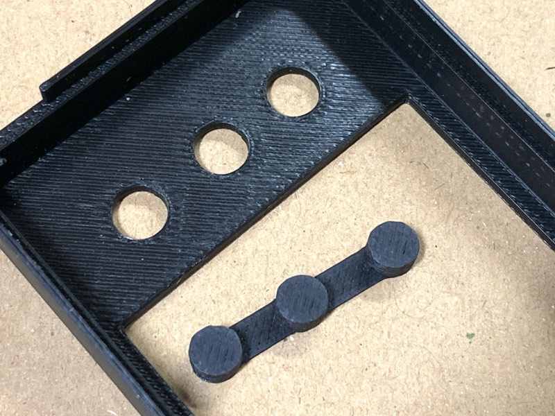 タクトスイッチ用のボタンは三つがつながっている。面白い。微妙に間隔が違うようで、向きを逆にすると入らない。