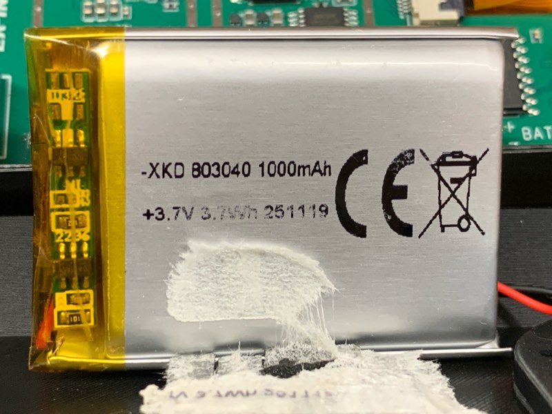 バッテリとスピーカは裏蓋に貼り付けられている。スピーカはさすがに小さい(ATS-miniよりは大きいけれど)。どちらもコネクタではなく基板に直付けなので、蓋を開けるときは切らないように要注意。