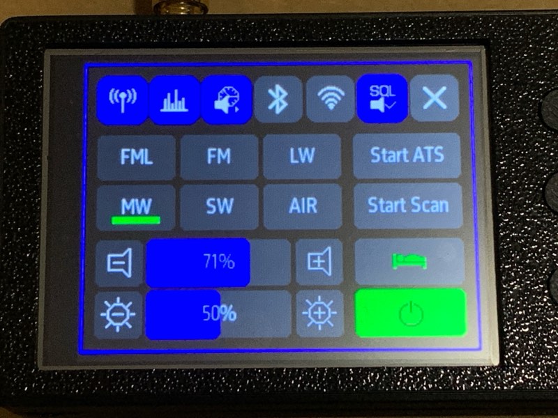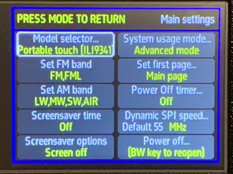この設定メニューからもわかるように、AIR(エアバンド)にも対応していることになっている、が、しかし、実際には動作しない(受信できない)みたい。あまりにも聞こえないので、tinySAのシグナルジェネレータモードで信号を出してみたけれど、これすら受信できない。逆に、短波のすり抜けのような放送が聞こえる。エアバンドに対応したモデルもあるのかもしれないが、少なくともこの装置では無理。