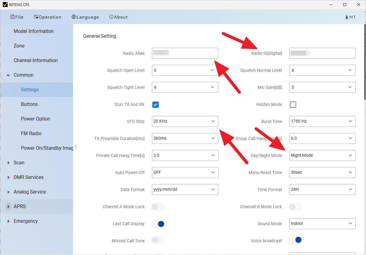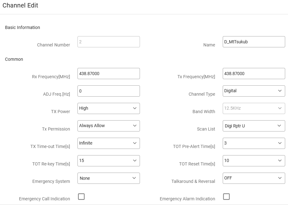 もし、DMR IDを変えることがあるとすれば、設備共用の場合か?それでもチャネルごとに設定などするとややこしくなるので、CommonのSettingsに設定するRadio IDを変えるか、いっそ、すべてを書き換える方が素直で使いやすいと思う(使用者の好みに合わせて設定したものをCPSで書き込む)。
