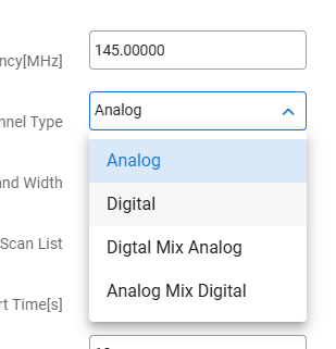 ここでは、デジタルの設定ができればいいだけなので、Digital、Digital Mix Analog、Analog Mix Digitalのどれを選んでも良い。ちなみに、後者二つは送信はデジタル・受信はアナログ(またはその逆)という特殊な使い方。普通は使わないと思う。