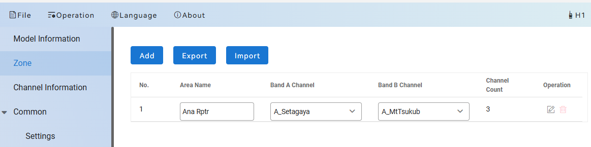 設定したチャネルはZoneに割り当てて使う。というか、Zoneに割り当てたチャネルが使用できる。