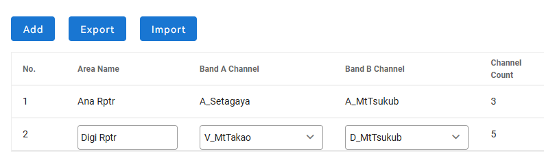この例ではアナログレピータとデジピータに分けたので。そのためそれぞれのZone(Area)の所属チャネルは重複していない。用途によっては複数のZoneに同じチャネルを所属させるのもあり。