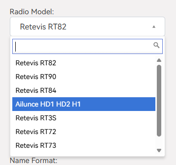 Radio ModelはH1を選択(Ailunce HD1 HD2 H1)。