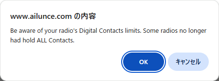 ちょっとした警告が出るが、リストの数が多いと無線機には全部は書き込めないからねという話。ALLではなく、Japanに限定しているので、そんな心配は無用。