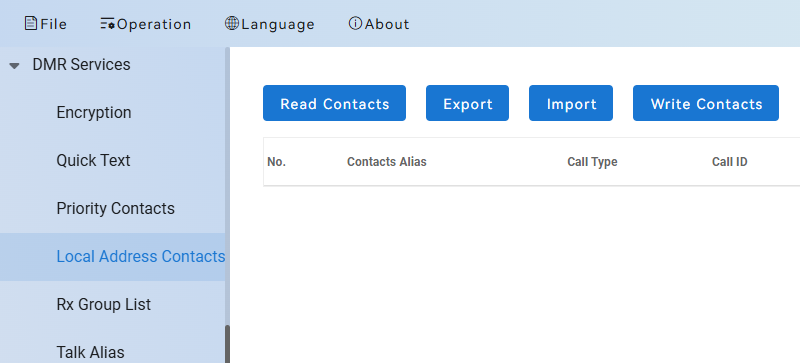 CPSのDMR ServicesにあるLocal Address Contactsを開いて、「Import」ボタンをクリック。先程ダウンロードしたリストを読み込む。