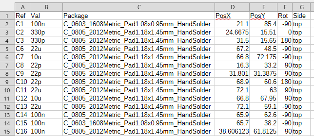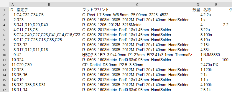 これを元にPCBGOGOの様式の部品表を作る。その様式(BOMの例)はここから入手できる。
