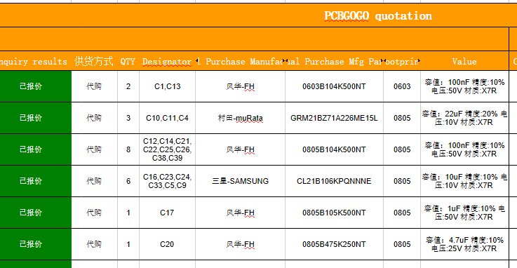 部品表をPCBGOGOの様式に合わせるのがちょっと手間ではあるけれど、ほとんどは「代替可」で済ませられるので思ったほど面倒ではなかった。その「代替可」にした部品は実際は何が実装されているか気になったので問い合わせたら最終的な実装BOMを送ってくれた。