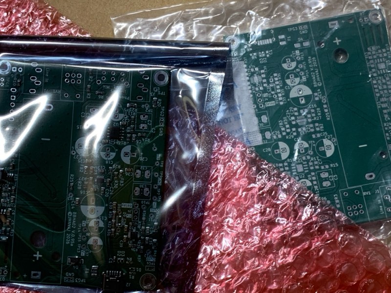 部品が実装された基板は個別に静電気対策袋に入っていた。