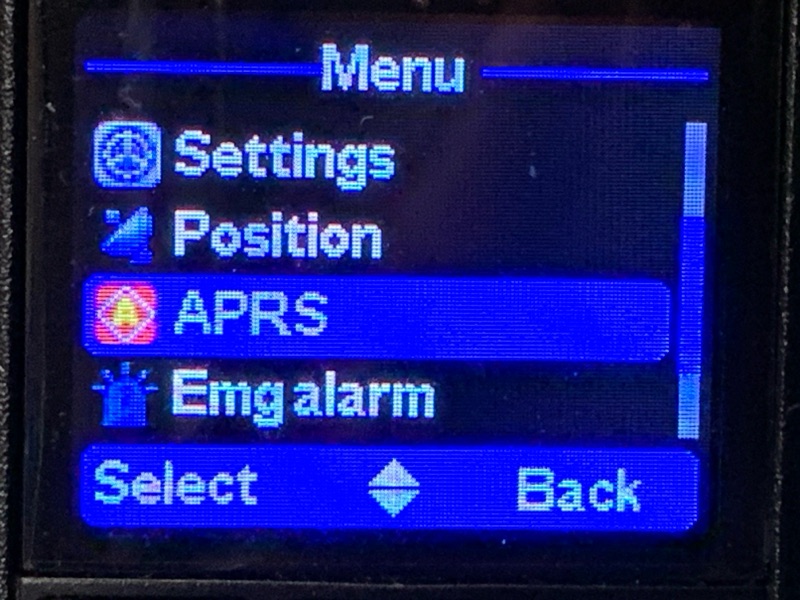 APRSメニューに入って操作する。