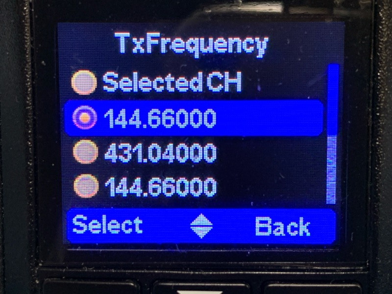 TxFrequencyで先程設定した144.66MHzを選ぶ(Selectex CHだと、現在のチャネル(またはVFO))。