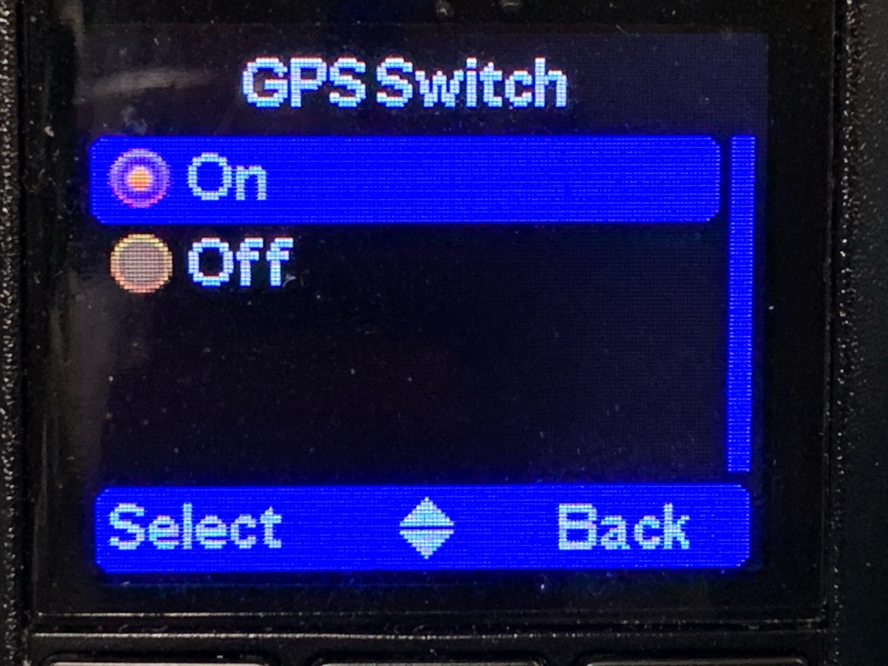 このメニューに入って、GPS SwitchをOnにすればGPSが使える。