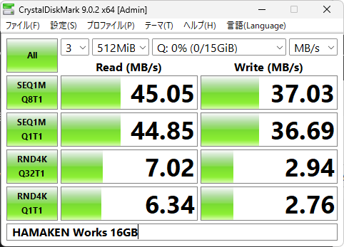 ベンチマーク結果は意外にもHAMAKEN WORKSが最も良かった。NanoVNAでの書込みも大丈夫だった(NanoVNAやLiteVNAは相性が結構ある(メモリを選ぶ)という印象がある)。あとは耐久性だけど、どうだろう?