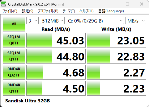 参考として、Sandisk Ultra 32GBもやってみた。