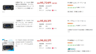 通販 【定点観測】IC-7300M、本日のお値段(96,121円) 早速、今回の最安値の検索結果。今回も長野ハムセンターヤフー店が最安値。カートに入れて進める。支払額が99,820円で、獲得ポイントが3,699。差し引きの実質額は、96,121円。一か月くらいまったく動いていない。なんか、つまんないなぁ。「... 2025/11/23 通販