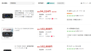 通販 【定点観測】IC-7300M、本日のお値段(93,003円) 今回は「プレミアムな日曜日」ではなくて、「超PayPay祭」。では、今回の最安値の検索結果。今回も3件。最安値ショップは変わらず、長野ハムセンターヤフー店。ただ、前回は検索一覧に出てこない「いず~」がもっと安かったので、そっちもチェック。わ... 2026/03/22 通販