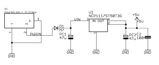 • +5V(モバイルバッテリを想定)