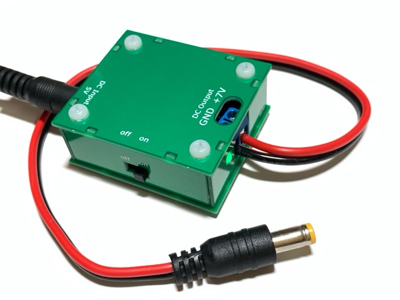 ということで、5Vを7Vに昇圧しようというのがこの電源アダプタです。