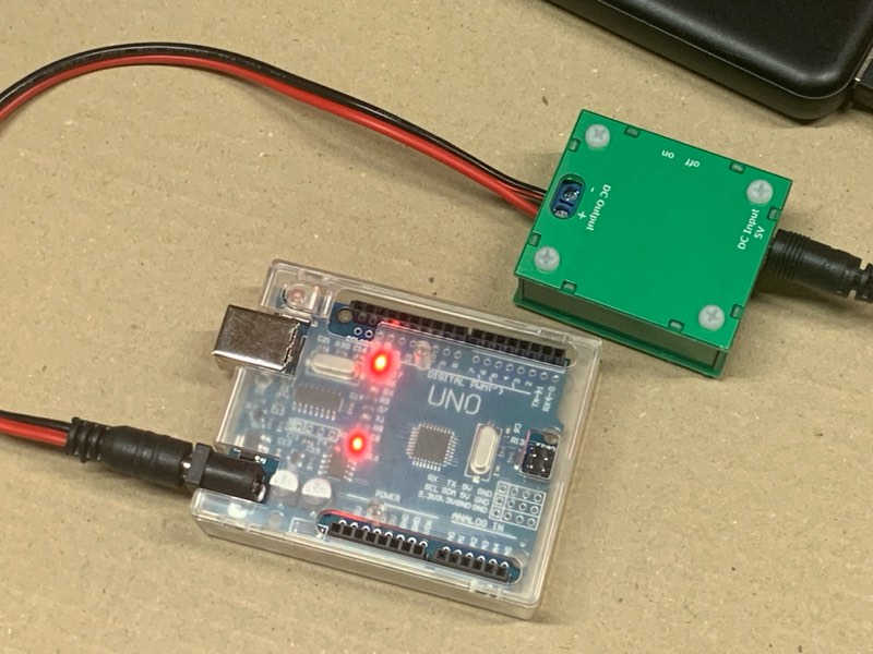 ArduinoはPCにつないでいればUSBバスパワーで動作します。しかし、PCから外して単独で使おうと思うと、当然ながら別途電源が必要。