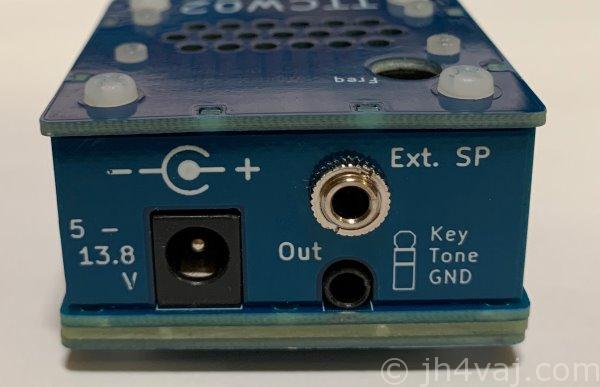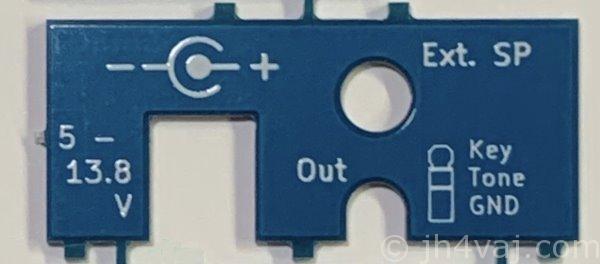 スピーカ用のジャックの穴が空いているので実装が楽です。文字も入れてあります。